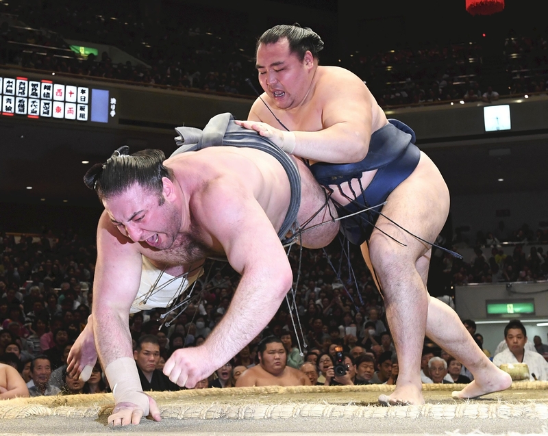 Popular komusubi Endo (3-11) suffered five straight losses after returning to the tourney after three absences. No. 4 maegashira Chiyotairyu pushed the komusubi out of the ring in a quick bout.