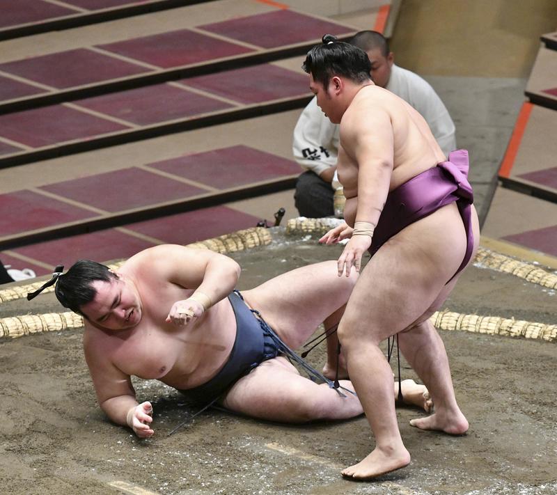 The yokozuna lost to No. 1 maegashira Endo on Day 1, exasperating the injury when he landed on the mound.
