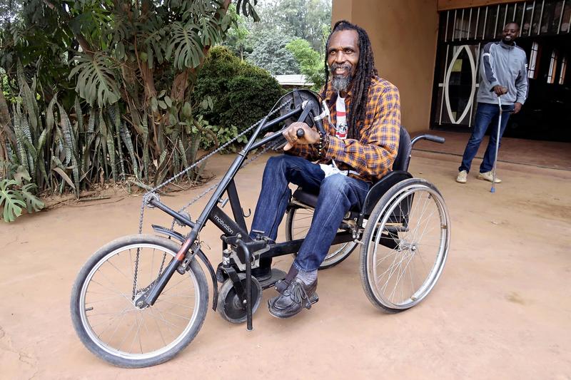 Electrician Evode Habimana, 42, received a new artificial leg from the workshop in August. Habimana lost his right leg from the shin down in 1994, as a result of being shot during the genocide. He was able to work thanks to an artificial leg he received after that, but it did not match the length of his left leg, forcing him to bend his body as he walked.