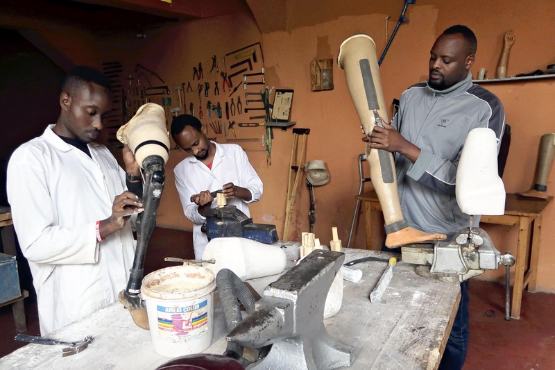 They had been drawn to each other while they were exchanging letters even after Rudasingwa went back to Japan. She had learned to make prosthetic limbs through her affection for Gatera, who has a leg disability. In the wake of the genocide in Rwanda, the number of impaired people who need support rapidly increased. More than 20 years have passed since she started the workshop.