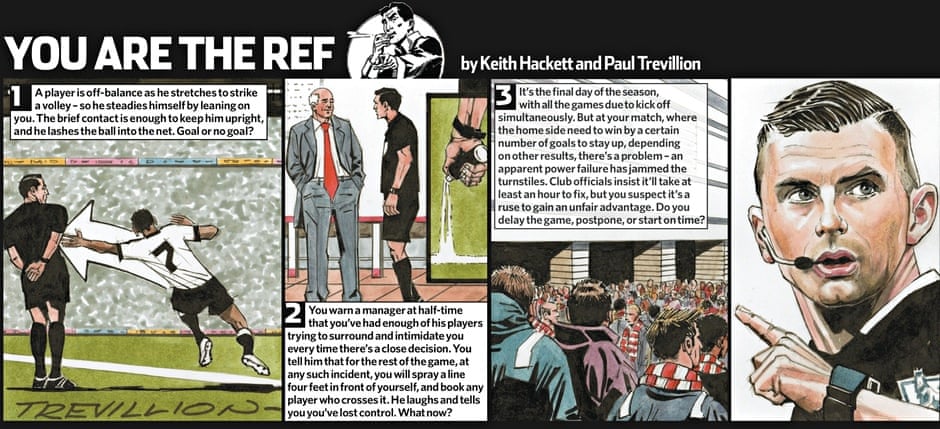 For a chance to win a Philosophy Football T-shirt of your choice from the Guardian range send us your questions for You are the Ref to you.are.the.ref@observer.co.uk. The best scenario used in each new strip wins a T-shirt; Terms apply. For more on You are the Ref's history, click here.