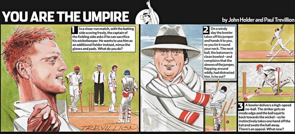 For a chance to win a sporting T-shirt of your choice from the Guardian range send us your questions for You are the Umpire to you.are.the.umpire@observer.co.uk. The best scenario used in each new strip wins a T-shirt; Terms apply. For more on You are the Ref's history, click here.