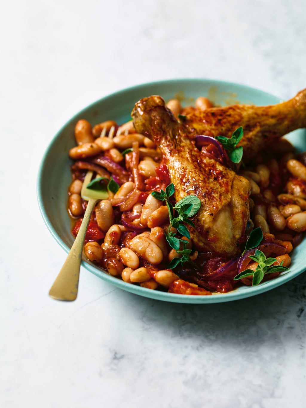 One of my favourite complete meals in a pot has to be cassoulet,” says Miguel Barclay, author of the One Pound Meals cookbook series. “You get the carb element from the beans, a lovely rich sauce and whatever you choose as the hero ingredient. Here I have gone for chicken drumsticks, which are affordable and delicious.”