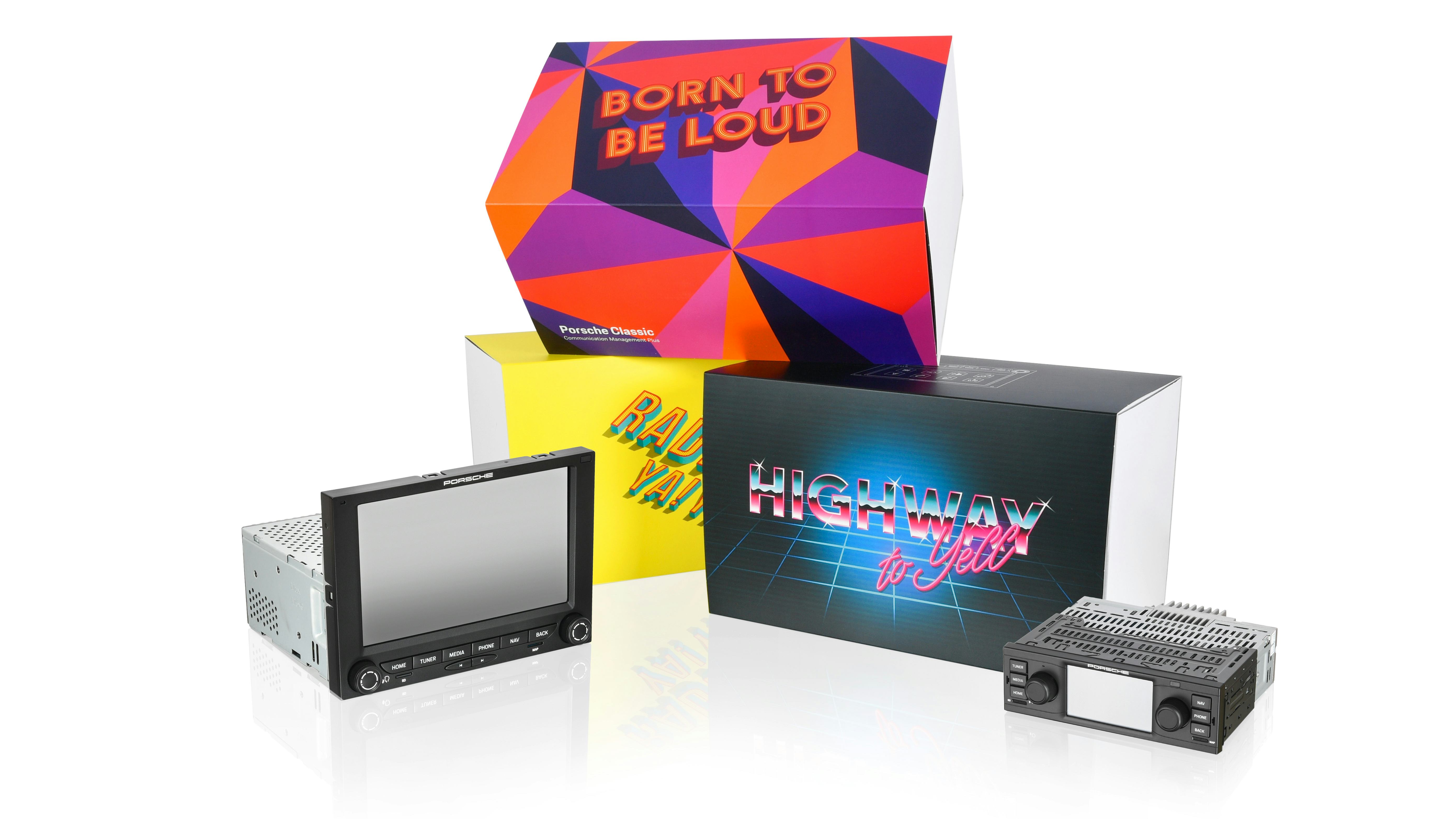 The PCCM comes in two variants, each designed to replace the original radios from classic Porsches that used either "1-DIN or 2-DIN dimensions.” Both iterations come packaged in suitably faux-retro packaging, with puns like "Born to be loud" and "Highway to yell" proudly printed on them.