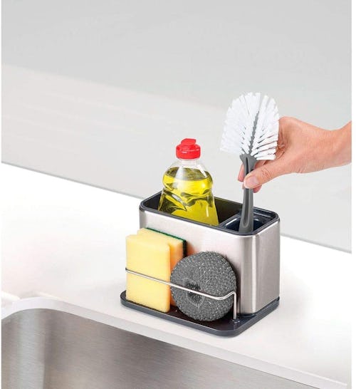 Keep your sponges, soaps, scrubbers, and brushes tidy and together with this stainless steel sink caddy that’s earned a 4.7-star overall rating. The genius of this caddy lies in its sloped bottom tray that allows excess water to drain back into the sink with no mess. The caddy also has separate compartments for brushes and bottles, as well as a rail for holding sponges. To top it off, the exterior is smudge resistant, so it stays looking nice.