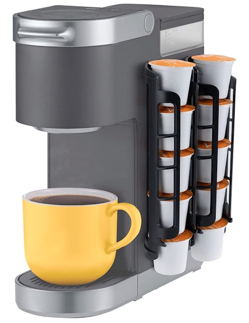 Take the clutter out of your morning cup of coffee thanks to this two-pack of K-cup organizers that you can mount anywhere you like. Whether you want to store your K-cups on the wall, inside of a cabinet, or right on the side of the Keurig machine itself — you can. Available in black and light gray, each dispenser holds five pods.