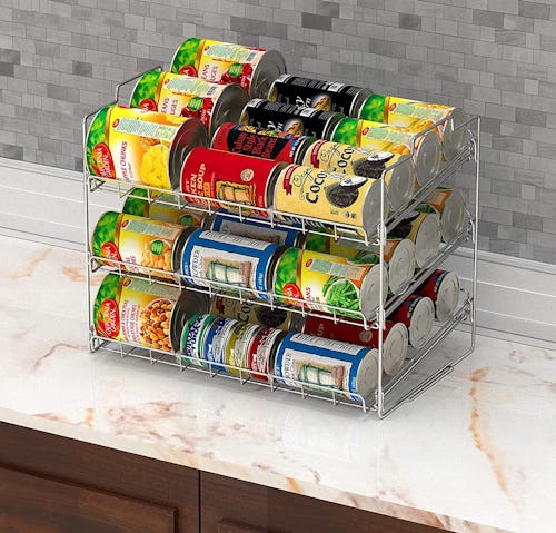 Say goodbye to (unsafely) stacking cans in your pantry and hello to this highly rated can organizer. Made of heavy-gauge steel, this sturdy organizer with adjustable plastic dividers can hold up to 36 cans and can be stacked for even more storage. Keep your soups, beans, and canned veggies right where you can see them.
