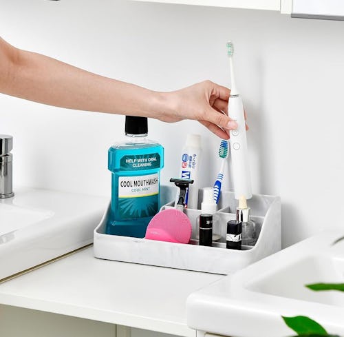 A smart way to organize your bathroom counter, this silicone organizer has a back row that’s intended for toothbrushes and toothpaste, and a front row that can hold all your other essentials. The organizer is flexible and easy to wipe clean, and — best of all — features drainage holes to keep excess water from building up.