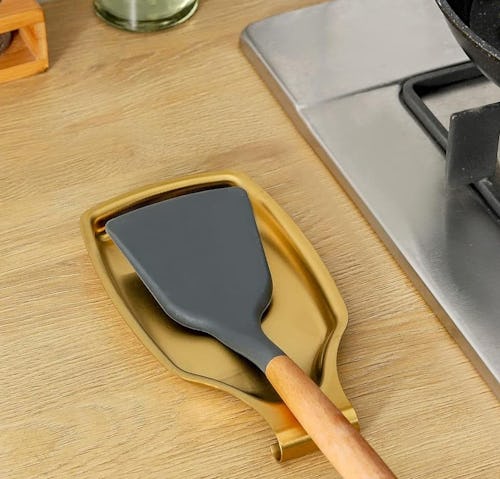 Eliminate gunky or wet messes from your stove and countertop with this gold spoon rest that adds a bit of luxury and functionality to your kitchen. Made with stainless steel, the rest has a sturdy feel to it but won’t cause damage to your stovetop or countertop. It’s heat resistant and dishwasher safe for easy cleaning.