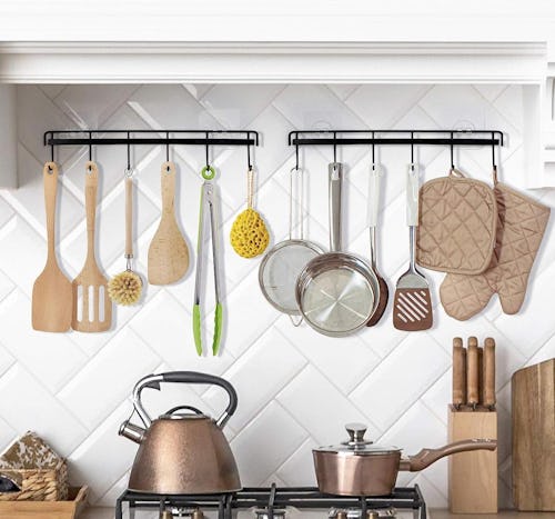 Turn your walls into instant storage for bulky kitchen utensils, thanks to these adhesive wall racks that double as decor, too. Available in black and white, they easily mount to your walls without damage thanks to the strong adhesive backing. Each one holds up to 7 pounds and has six hooks for oven mitts, ladles, tongs, and more.