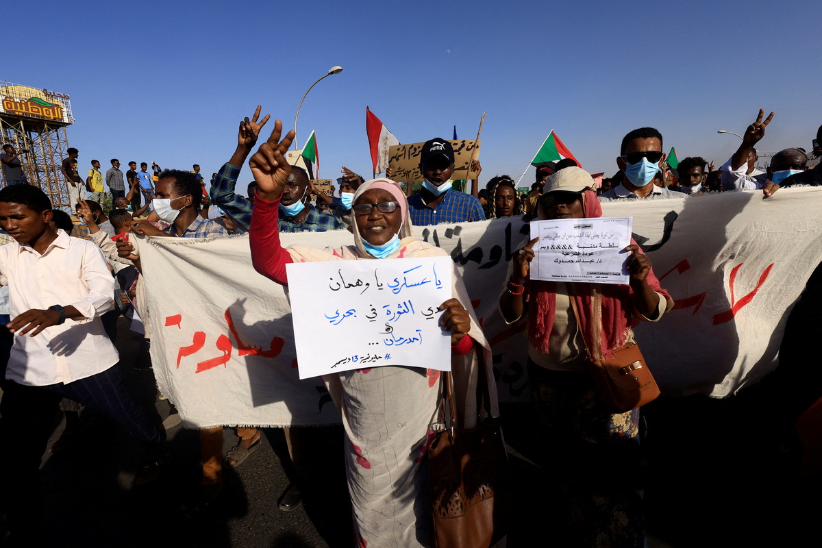 Thousands marched from the capital Khartoum's twin city of Bahri over the Nile towards Omdurman, waving national flags and chanting slogans against the military. Security forces had previously kept the bridge between Bahri and Omdurman closed during protests.