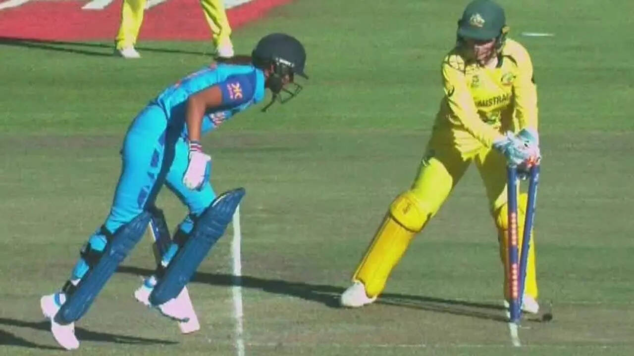India almost overhauled Australia's 172/4 on the back of a partnership between Harmanpreet (52) and Jemimah Rodrigues (43), but in the 15th over of India's run-chase, Harmanpreet's bat got stuck on the ground just outside the crease while trying to complete a second run and Healy removed the bails in a flash.