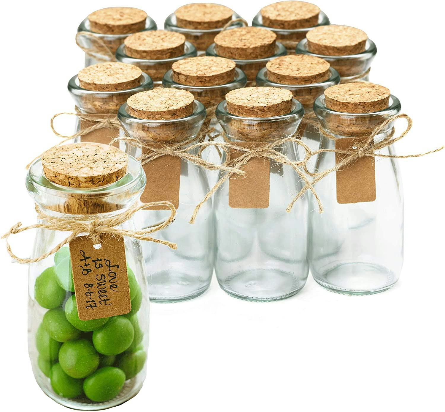 Whether you are crafting an elegant spice rack, drying herbs, organizing your medications or other small items, or making something small to give away as gifts, this pack of 12 glass jars with wide mouths and cork lids will look beautiful doing it. They come with twine and labels so you can label your packaging.