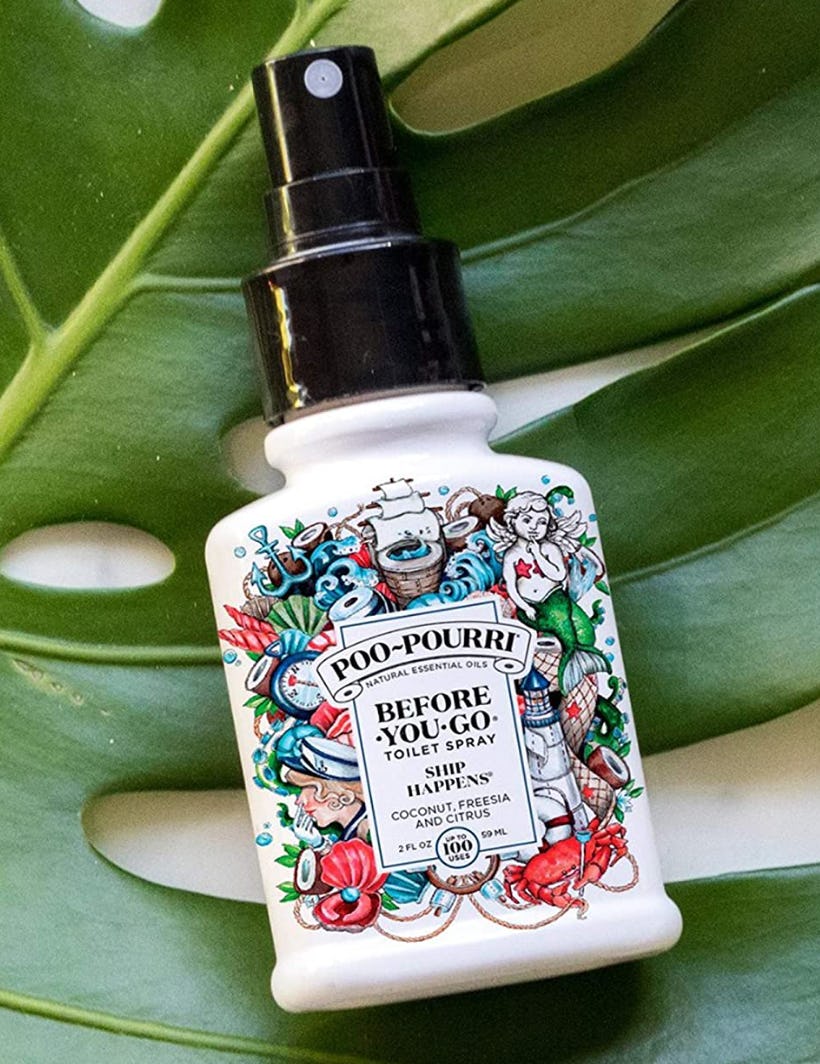Spray this coconut and freesia scented bathroom deodorizer into the toilet bowl before you go and you won’t have to worry about the smells that might emanate from the bowl afterward. This clever bathroom deodorizer creates a barrier on the surface of the water that odors cannot cross. All anyone will smell — no matter what you leave in the bowl — is flowers with a hint of citrus.