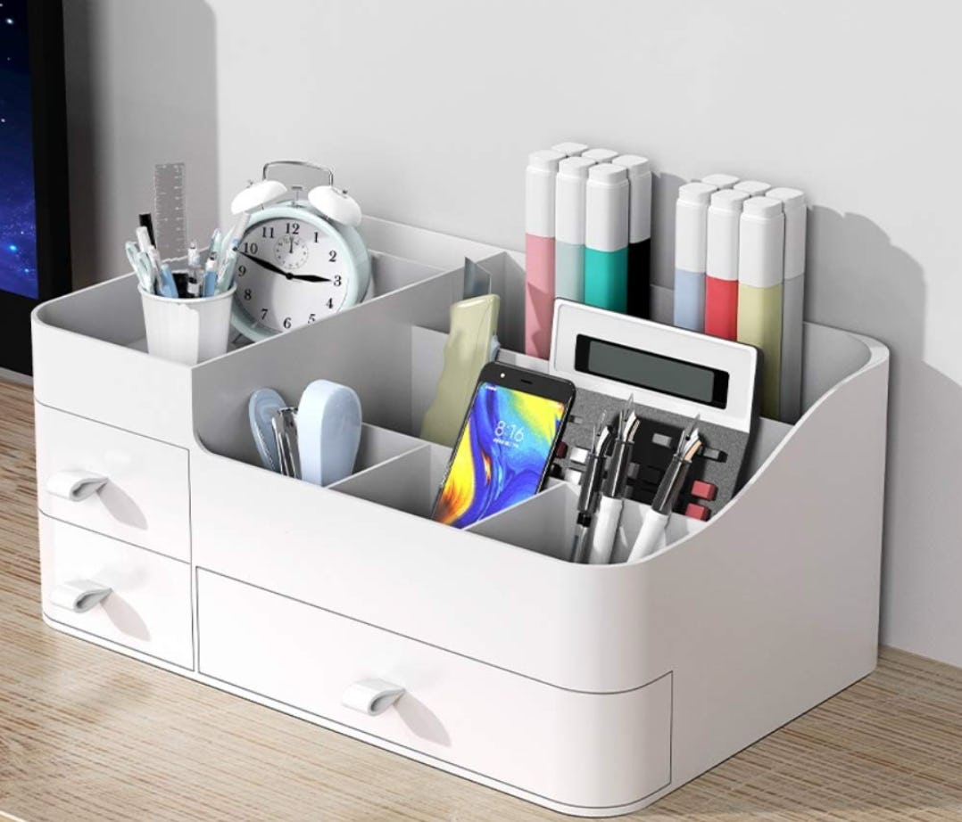 When your personal care products start to turn into clutter, reign it all in quickly — and so you will be able to find everything when you want it — with this organizer for your vanity. With a tiered shelf area for hair care products, lotions, colognes, and grooming oils and balms, your self-care routine will be tidy. Keep your everyday carry, nail care, and other small items in the drawers. It works great as a desk organizer, too.