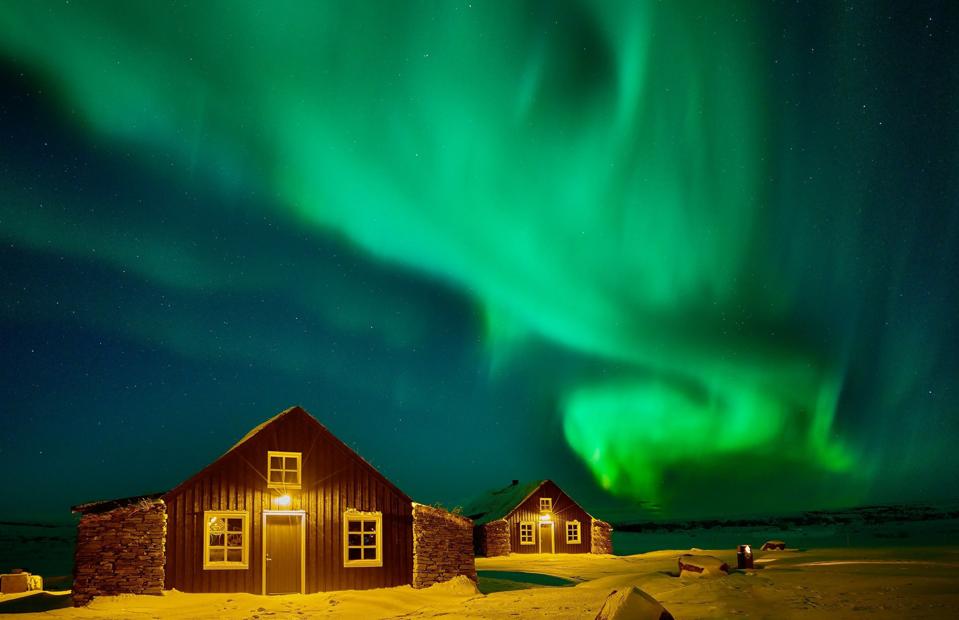 After touring or hiking the local sights and experiencing whatever five course surprises the chef has assembled, a perfect end for the day is a soak in the steaming geothermal pool back at the retreat. With luck, and a clear sky, it’s the ideal place to be as flickering green slashes appear in the sky.