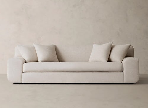 The Stinson sofa blends the clean lines of mid-century modernism with a softer silhouette — with low, wide arms and rounded edges — that invites you to take a rest. The frame is handcrafted from maple, ash, and plywood, and there are a range of fabric finishes and neutral shades to match any style.