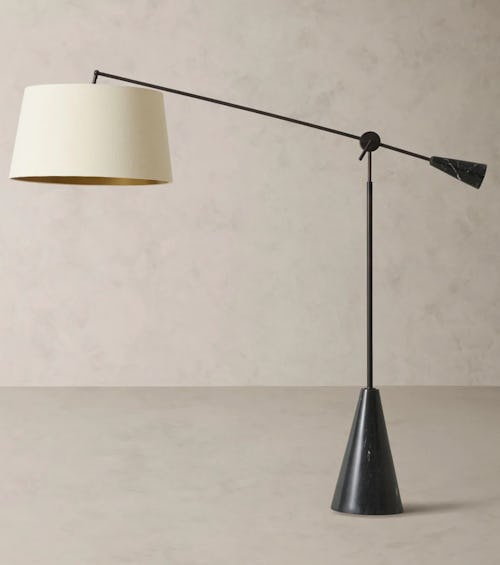 Crafted from Marquina marble — known as “midnight marble” — and iron, this floor lamp has clean lines to make a bold statement. It’s simple to turn on and off using the foot-step switch.