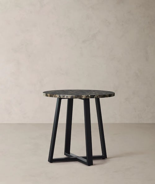 Between the geometric metal base and marble top with a lustrous finish, this side table will steal the show in your home. The stone comes from Spain and each piece has natural veining variations for a special touch.