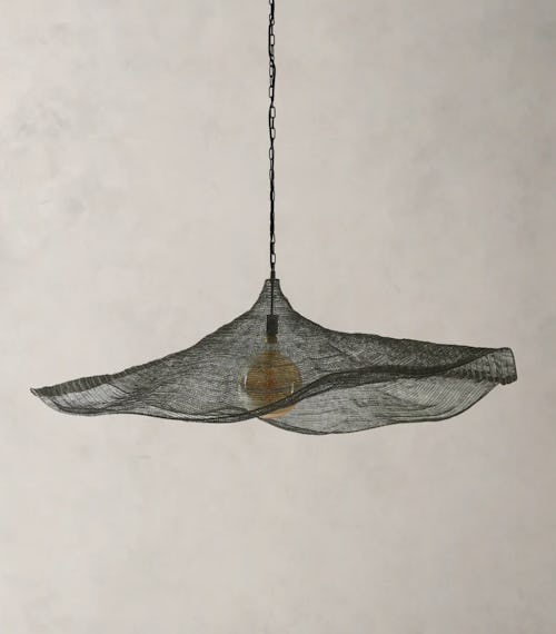 This round pendant lamp will serve as a true stand-out piece in your home. It’s crafted from handwoven wire mesh (that can easily be reshaped) to let the light shine through.