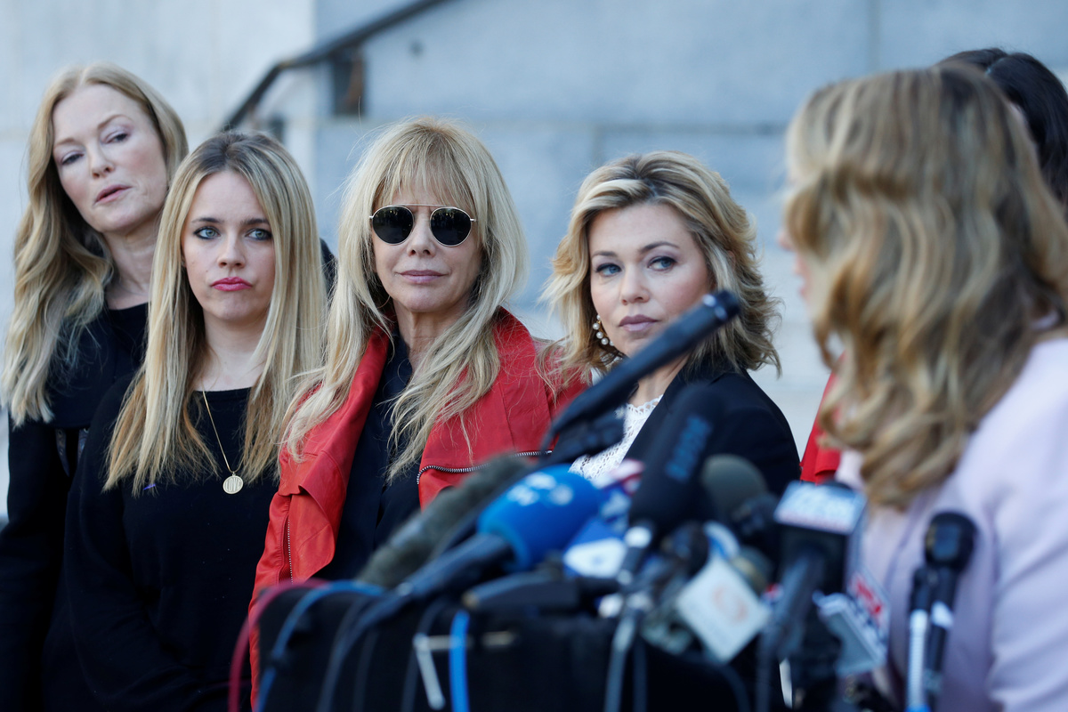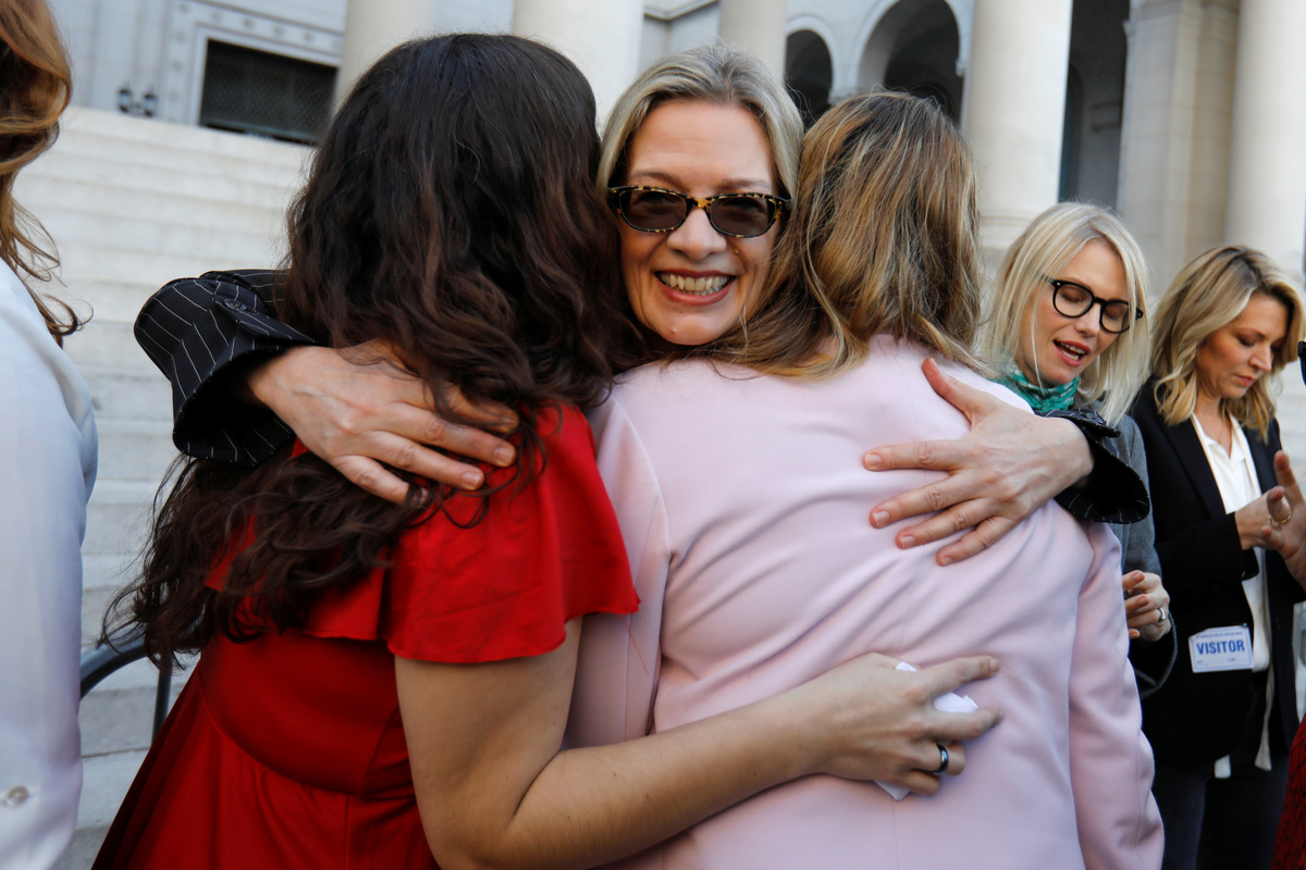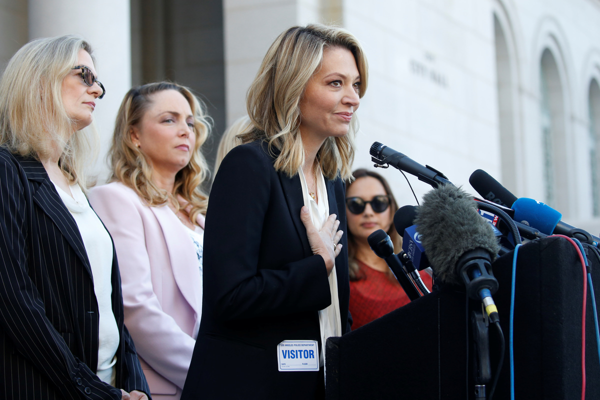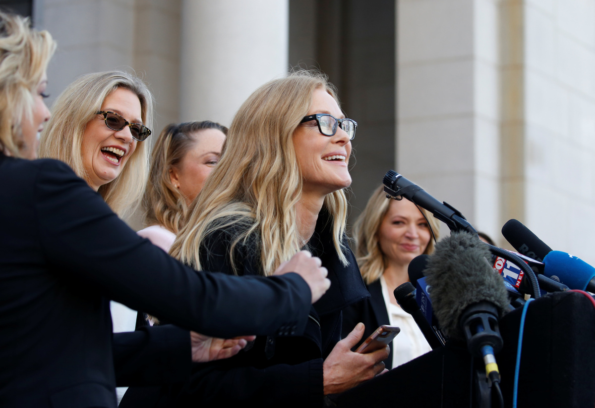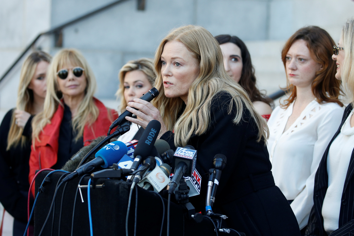 Louise Godbold hugs Sarah Ann Masse and Louisette Geiss after a group of women known as "The Silence Breakers" spoke out about the Harvey Weinstein's verdict at a news conference outside Los Angeles City Hall following the verdict in New York of the Harvey Weinstein trial in Los Angeles, California, U.S. February 25, 2020. REUTERS/Mike BlakeCaitlin Dulany speaks with "The Silence Breakers", a group of women who spoke out about Harvey Weinstein's sexual misconduct during a news conference outside Los Angeles City Hall in Los Angeles, California, U.S. February 25, 2020. REUTERS/Mike BlakeKatherine Kendall speaks with "The Silence Breakers", a group of women who spoke out about Harvey Weinstein's sexual misconduct during a news conference outside Los Angeles City Hall in Los Angeles, U.S., February 25, 2020. REUTERS/Mike BlakeJessica Barth speaks with The Silence Breakers, a group of women who spoke out about Harvey Weinstein's sexual misconduct, during a press conference outside Los Angeles City Hall following the verdict in New York of the Harvey Weinstein trial in Los Angeles, California, U.S. February 25, 2020. REUTERS/Mike BlakeThe Silence Breakers (L to R) Jessica Barth, Rossanna Arquette, Lauren O'Connor, Caitlin Dulany, Sarah Ann Masse, Louise Godbold, Lauran Sivan, Louisette Geiss, Larissa Gomes, Melissa Sagemiller Nesic and Katherine Kendall pose for a group picture following a news conference on the Harvey Weinstein verdict outside Los Angeles City Hall in Los Angeles, California, U.S. February 25, 2020. REUTERS/Mike Blake