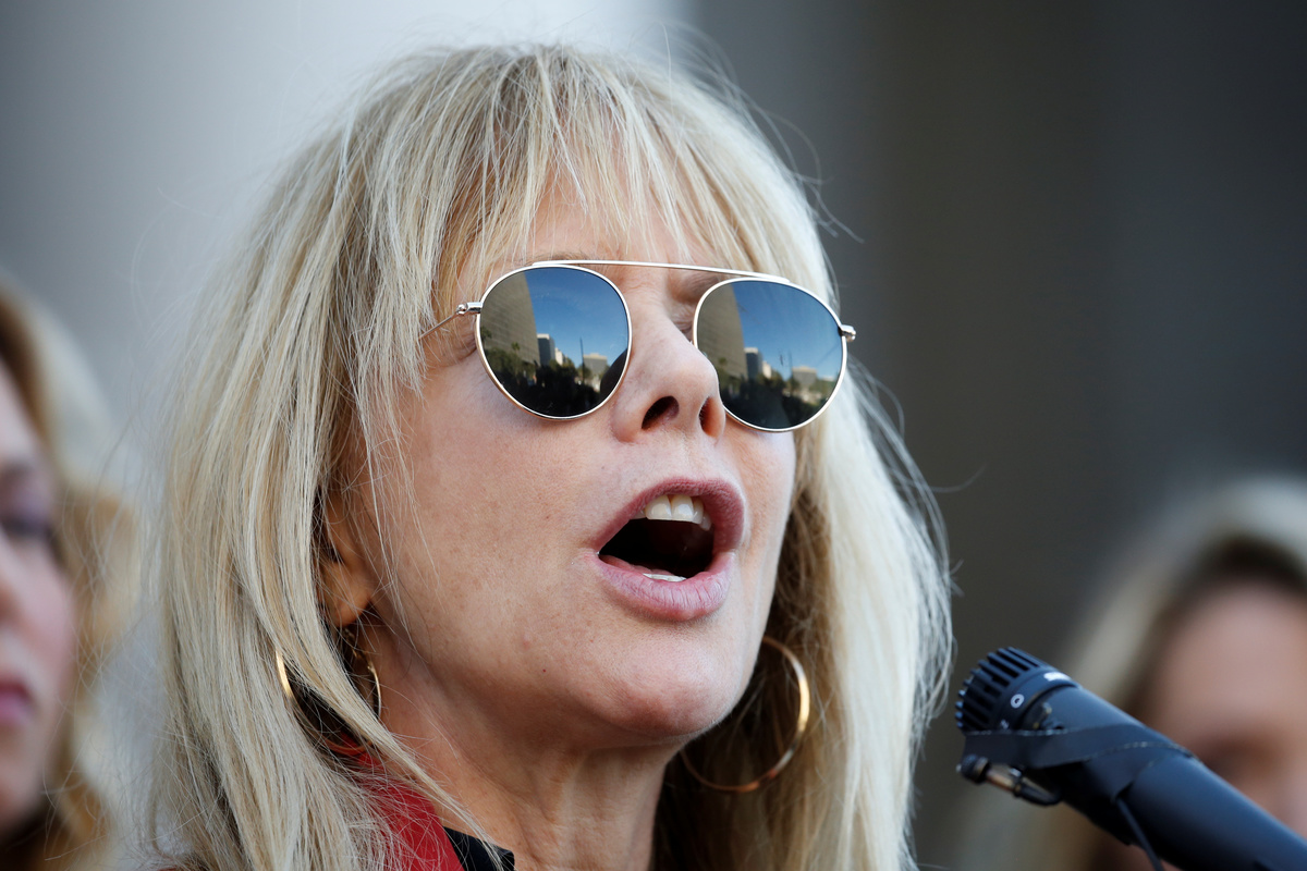 Rosanna Arquette speaks with The Silence Breakers, a group of women who spoke out about Harvey Weinstein's sexual misconduct, during a news conference outside Los Angeles City Hall following the verdict in New York of the Harvey Weinstein trial in Los Angeles, California, U.S. February 25, 2020. REUTERS/Mike Blake