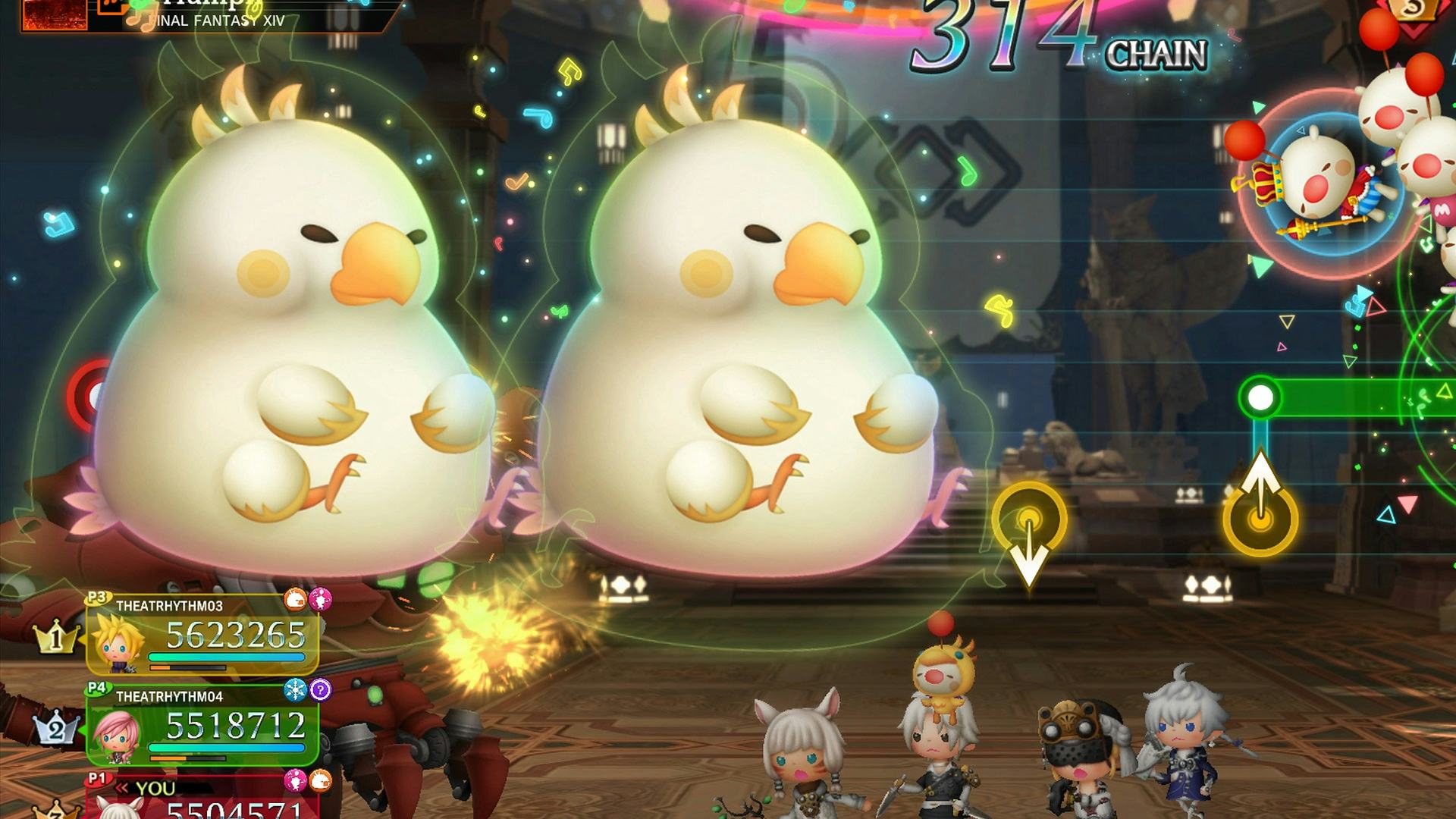 Final Bar Line also features a brand-new mode called Multi Battle, where you face off against another player. In this mode, you have a gauge that fills as you do well and, when full, is used to unleash special attacks against your opponent, like filling their screen with Fat Chocobos that make it hard to see. This multiplayer mode ups the chaos of some already intense songs, and creates a fun spin on the core formula of Theatrhythm.