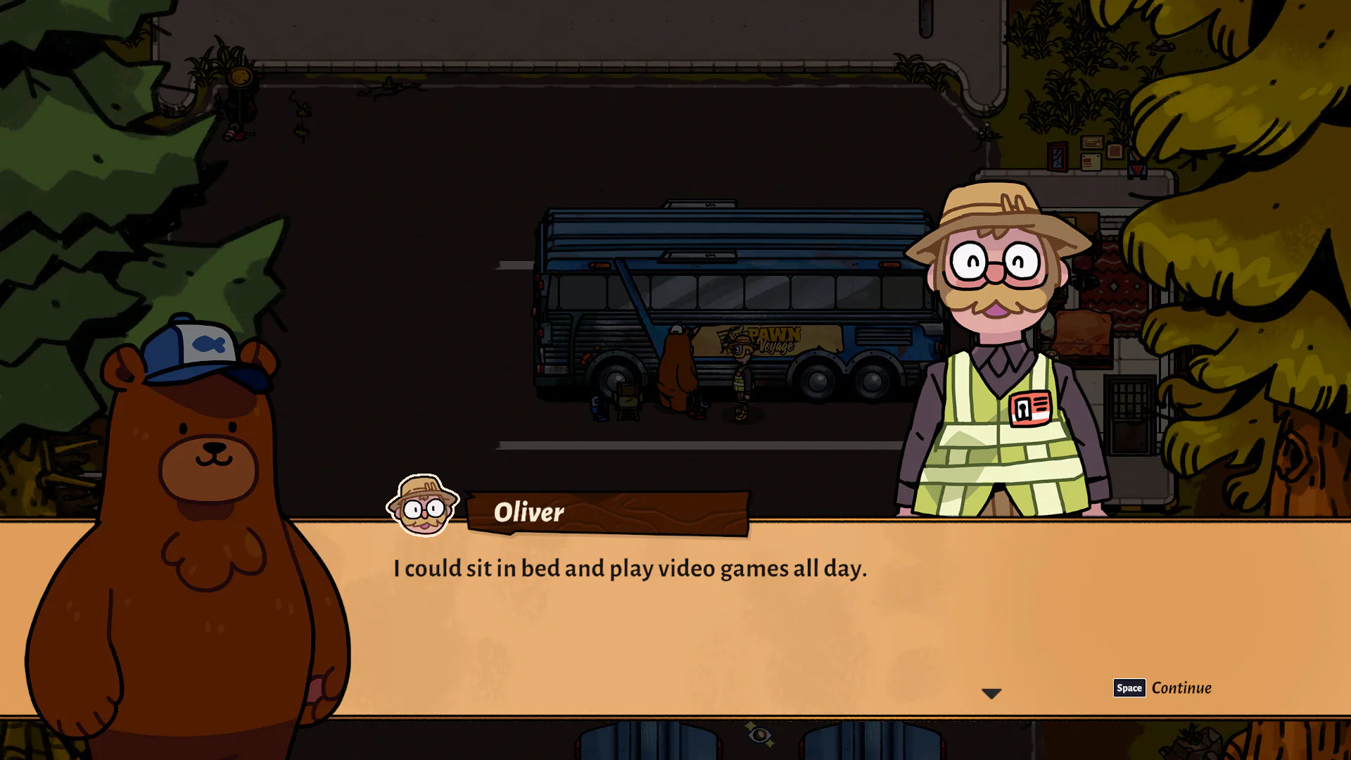 Also, the maps could use some work. I’d rather press a warp point on the map and go straight there instead of walking between bus stops to “fast travel.” Hank is just so dang slow. I know, he’s a bear, and he’s just trying his best. But these maps could also use a zoom button or something so that I’m not spending more time than I need to panning about the entire map.