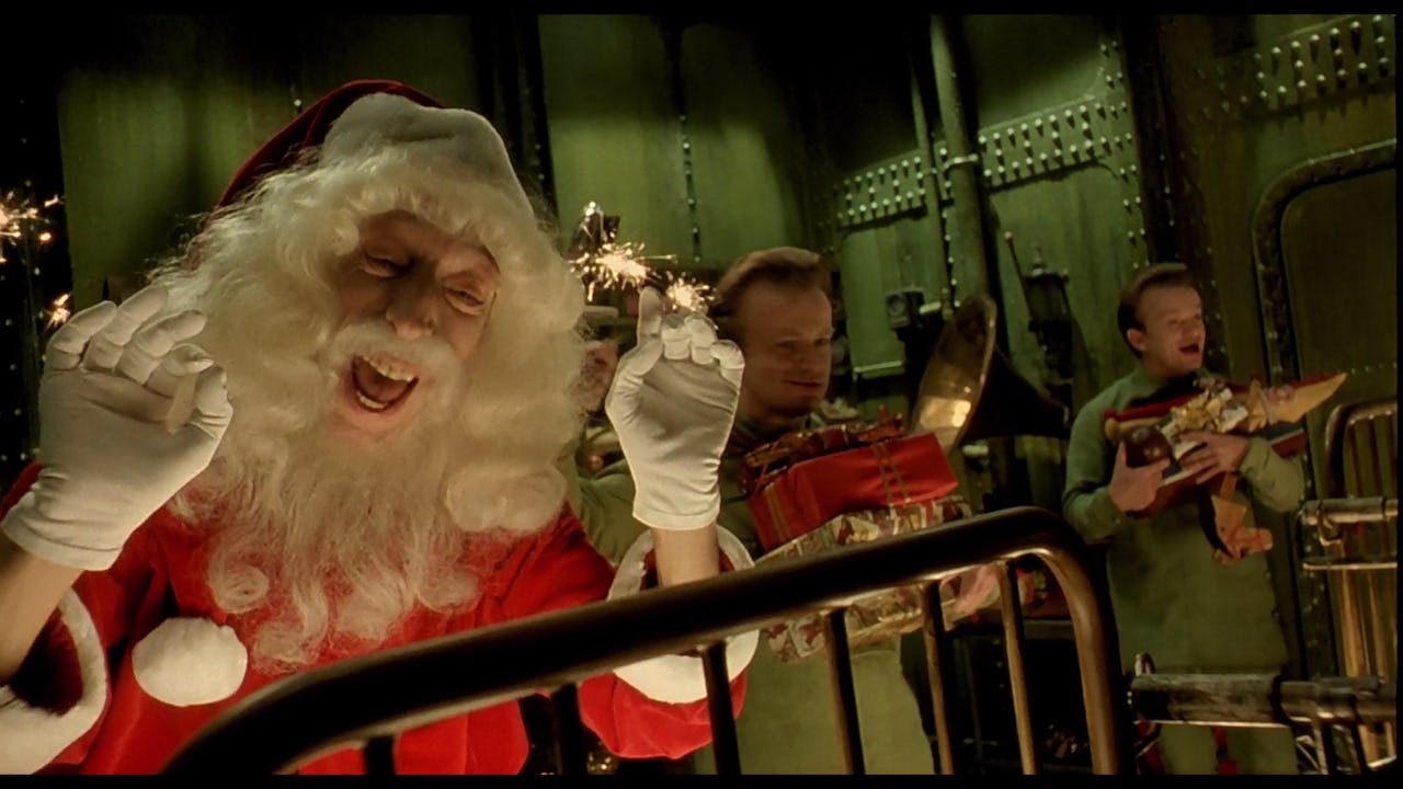 The boy reaches for a teddy bear, the only comforting object in view, as more Santas appear at the window, and some enter through his bedroom door. They’re everywhere. The picture becomes warped, rippling as one particularly gaunt Santa approaches. This is the wretched Krank (Daniel Emilfork), though we don’t yet know this and share in the child’s panic — not that learning about Krank when we do, is a source of comfort.