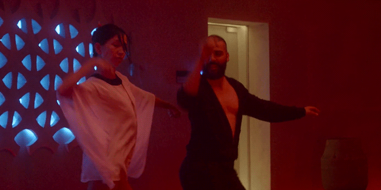 A crucial point in the film comes when it dawns on Caleb, and the audience, who he's dealing with. Midway through the film, Nathan's speechless servant, Kyoko (played by model/actress Sonoya Mizuno) joins Nathan in an over the top dance routine that is shockingly, eerily well-choreographed. Almost like Kyoko is programmed that way.