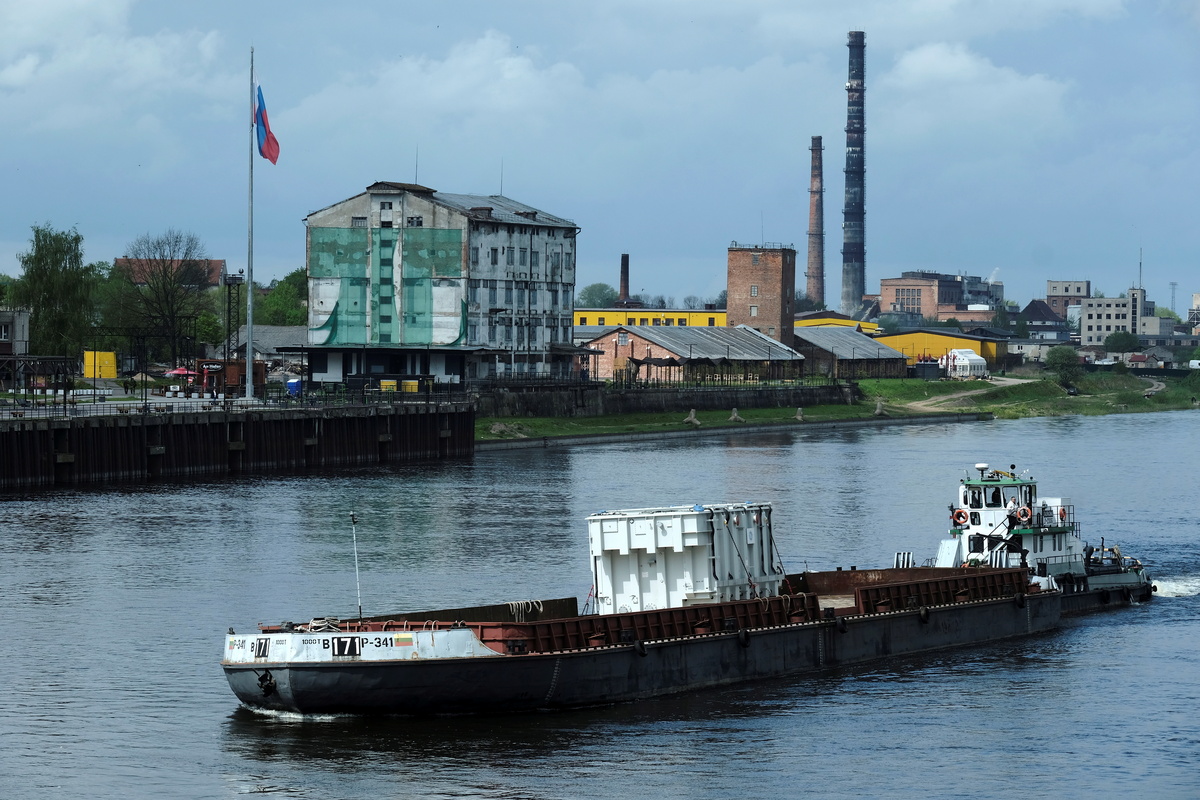 A barge carrying equipment to help Baltic states access Europe's power grid passed under a bridge between Lithuania and Russia's Kaliningrad exclave on Friday, as the former Soviet republics seek to end their reliance on electricity supplied by Moscow.