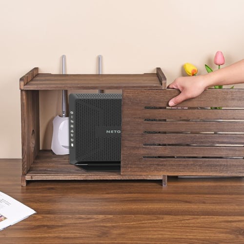 If you can’t work around hiding your wi-fi router inside a cabinet, consider stashing it inside of this box. The rustic finish makes it a stylish addition to any home — and there are multiple holes in the back where you can thread cables through as needed.
