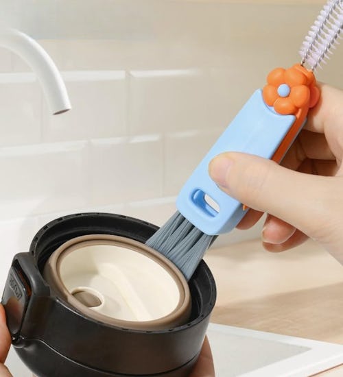 Ever notice how grime can develop in the tight nooks and crannies on your tumbler lids? Then this brush is a must-have. It features three cleaning tips: one stiff bristle brush, one slit brush, as well as a sturdy hook for any extra-stubborn bits that require scraping. “The tiny pick helps lift the rubber seals without damaging them, and the bristles reach into awkward spots effortlessly,” wrote one reviewer.