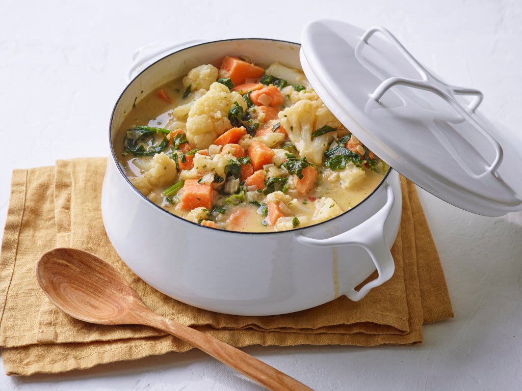 3. Add the frozen sweet potato and cauliflower and bring back to a simmer for 10 minutes.
