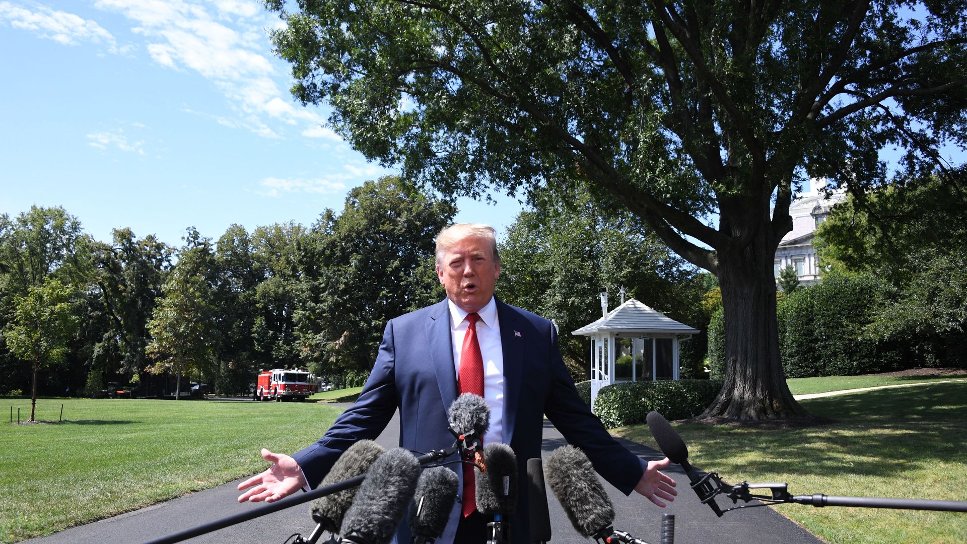 Context: Before leaving for Louisville, Kentucky, where Trump is expected to speak at a veteran's convention later on Wednesday, he again disavowed "The Squad," which includes Reps. Rashida Tlaib (D-Mich.) and Ilhan Omar (D-Minn.).