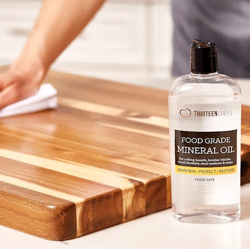 Here’s something you might not know existed but is a kitchen must-have — mineral oil for your cutting board and other wood surfaces. This colorless, odorless, and tasteless oil helps to prevent cracking and drying and can also help bring new life to your knives and appliances, too. With a push-button cap and squeeze-bottle design, it’s easy to apply — just use it once every three months.