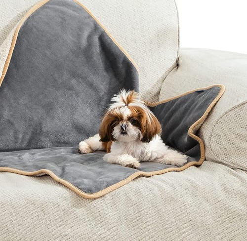 Accidents, drool, and tumbleweeds of fur are inevitable, but this pet blanket protects your furniture from all of it. It features soft fleece on one side and fuzzy sherpa on the other — so your four-legged friend will be tempted to cuddle up on it — but a waterproof middle layer provides lots of protection. It comes in a range of sizes, so you can find one for your petite kitty or one that covers your entire bed.