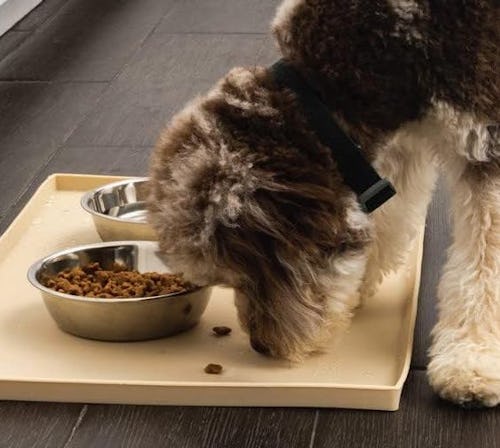 Prevent pet messes before they start with this pet food splash mat that helps keep everything clean while your furry friend eats and drinks. It’s designed with raised edges to keep spills off your floor and stays in place thanks to a nonslip diamond pattern. Made of food-grade silicone, it’s BPA-, PVC-, and phthalate-free.