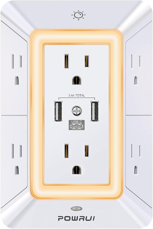With six standard AC sockets, two USB-A ports, and one USB-C port, this outlet extender and surge protector turns any wall into an all-in-one power station. It also features a built-in-night light with a dusk-to-dawn light sensor, and it’s brightness adjustable between three levels — no wonder it’s earned a fan following on Amazon.
