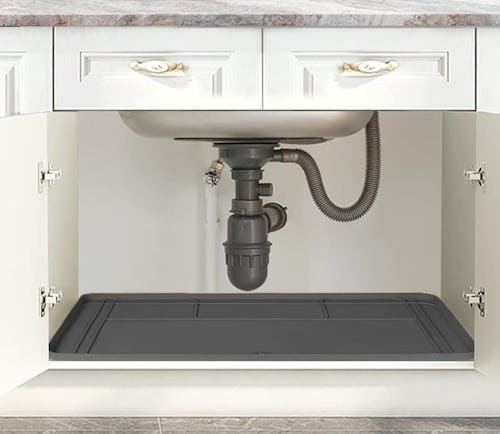 The cabinet under the sink can be prone to water damage if any pipe leaks should occur — and it can also become a soggy mess if a bottle of cleaning fluid should tip over. To keep everything contained, place this under-sink mat down. The durable waterproof construction protects wood surfaces and the raised sides help prevent any spillover.