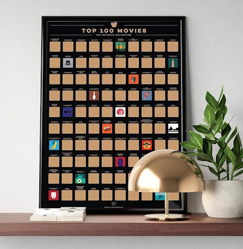 Make watching a quality movie even more satisfying with this movie scratch-off poster. It features the titles of 100 acclaimed films with a corresponding removable film for you to scratch off once you’ve seen it. Once scratched, it reveals a cute thematic graphic relevant to the movie’s subject matter.