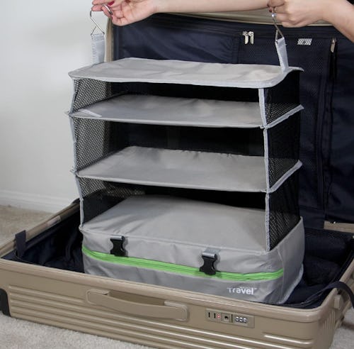 These portable hanging travel shelves are the gift your jet-setting friend has been waiting for. They function similarly to standard packing cubes and feature one zippered compartment and three open compartments, all of which compress your items in a suitcase to save space. Once you arrive at your destination, just hang the hooks on the curtain rod and enjoy instant, organized storage without ever having to unpack.