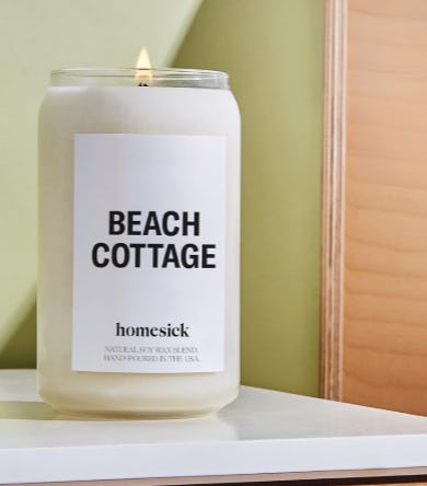 Homesick Scented Candles for Home (Beach Cottage) - Long-Lasting Natural Soy Wax Blend Jar Candle Gifts for Women & Men, 60-80 Hours Burn Time - Notes of Bergamot & Sandalwood