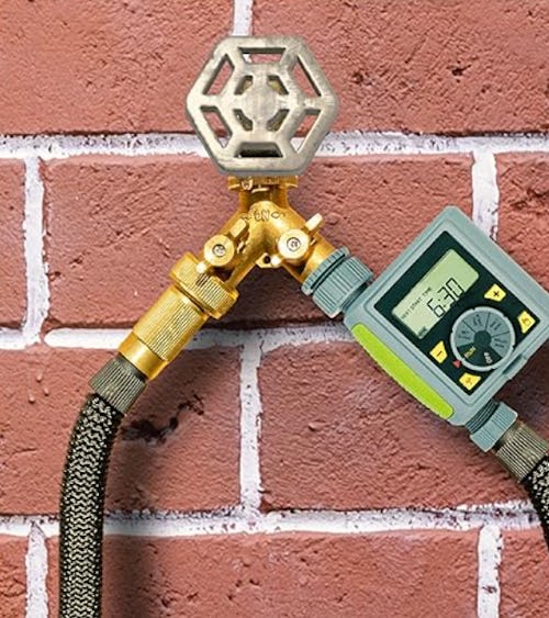 Twist this splitter into your outdoor spigot, and you’ll be able to connect two hoses to it at the same time. It’s made from solid brass, has a universal fit, and features a rubber gasket on all three ends to help prevent leaks. Plus, there are also on/off valves so that you can control the water flow to both connections.