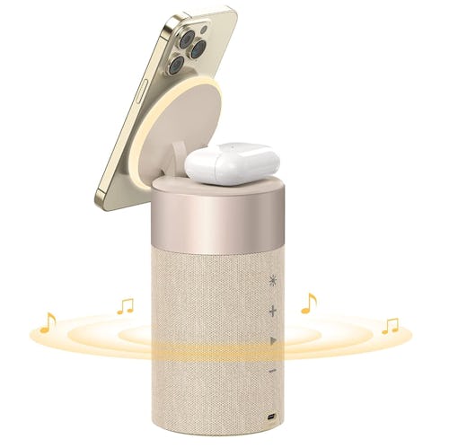 Not only is this Bluetooth speaker great for jamming out to your favorite tunes, but it also features a wireless charger that powers up your phone as it streams music. It’s compatible with any Qi-enabled smartphone. And with five colors to choose from (yellow, black, blue, gray, or light pink), you shouldn’t have any trouble finding one that suits your style.