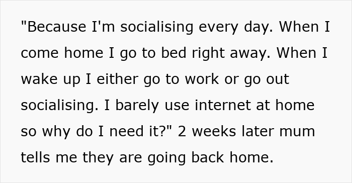 The author did this through his malicious compliance, which drove his parents to go back home. While they may have meant well, they also stepped on their son’s attempt at independence and living his life, which he didn’t appreciate.