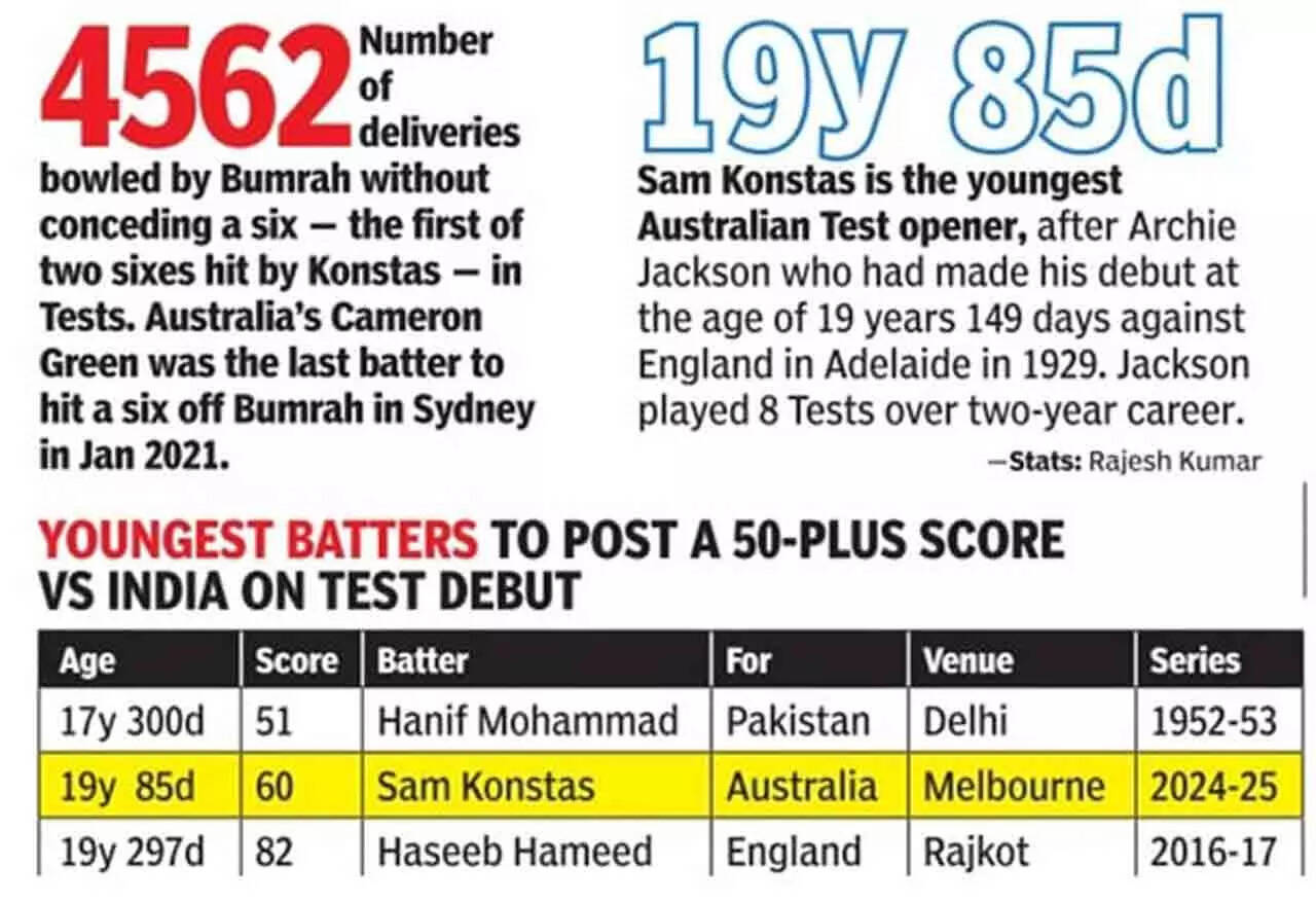 A crowd of 87,242 spectators, a record for a day of Test cricket versus India in Australia, looked on in awe as Konstas, in an electrifying morning session against the new ball, dismantled the myth of Jasprit Bumrah and broke the pacer's stranglehold on the Aussie top order.
