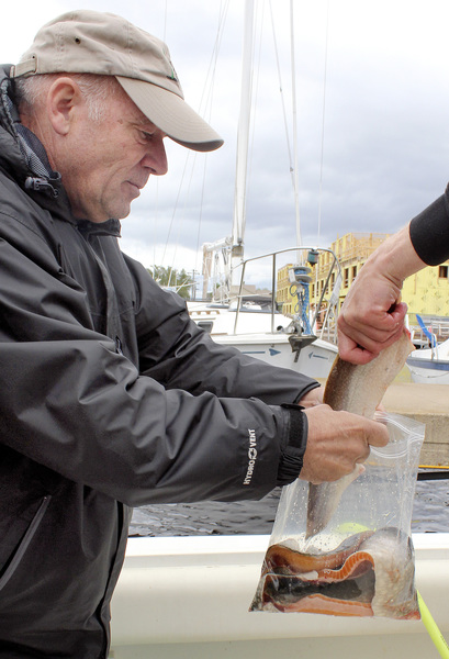 Bambenek's 12-week-old Lab pup, Remi, also was along, sleeping peacefully in a forward berth.