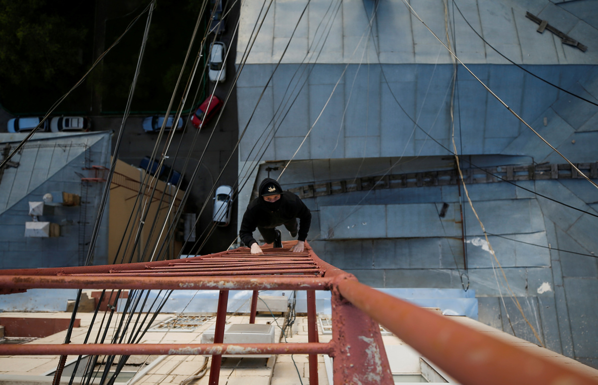 Another 'roofer', Georgy Lanchevskiy, climbed in 2013 the spire of Moscow State University, which is 240 meters high. He said the risk of death or arrest gave him an adrenalin rush.