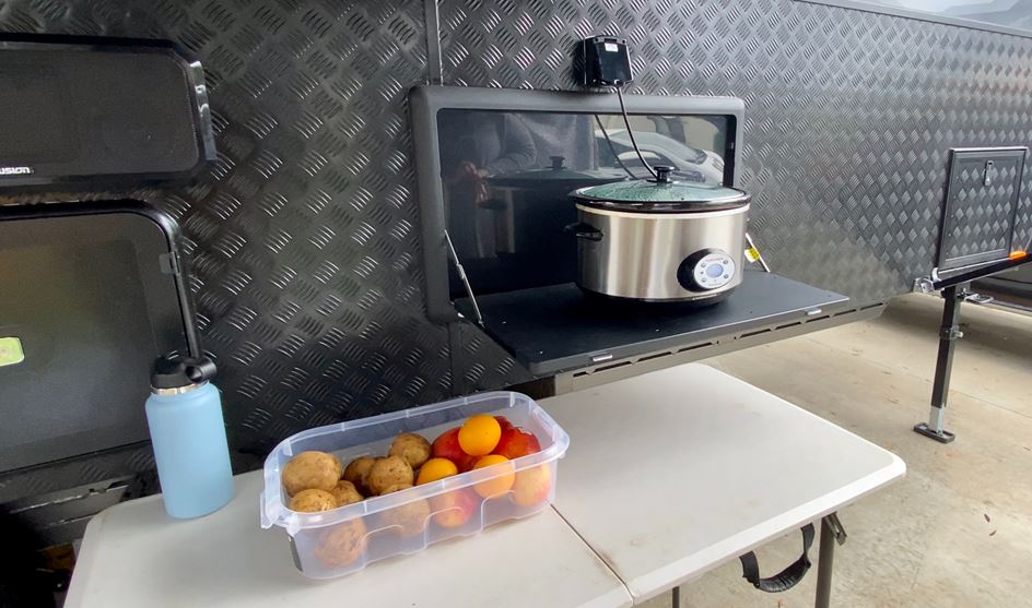 The caravan also extends into an enviable outdoor kitchen with both gas BBQs and electric cookers on offer, leaving plenty of bench space inside for the microwave and cafe-style coffee machine.